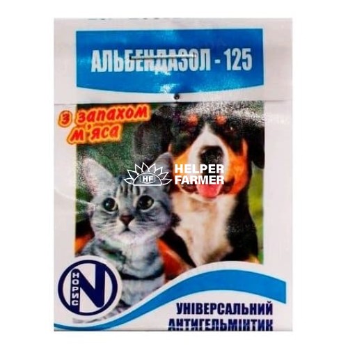 Альбендазол 125 (ДЛЯ ЖИВОТНЫХ) антигельминтик, на 5 кг, 1 таблетка